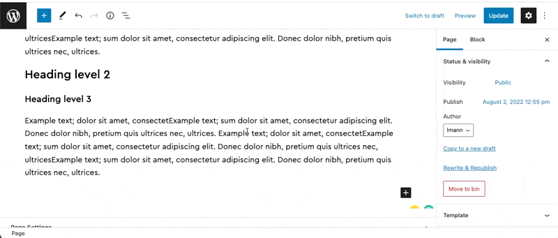 - Select the heading level (H1, H2, H3, H4, H5, and H6 heading level tags)