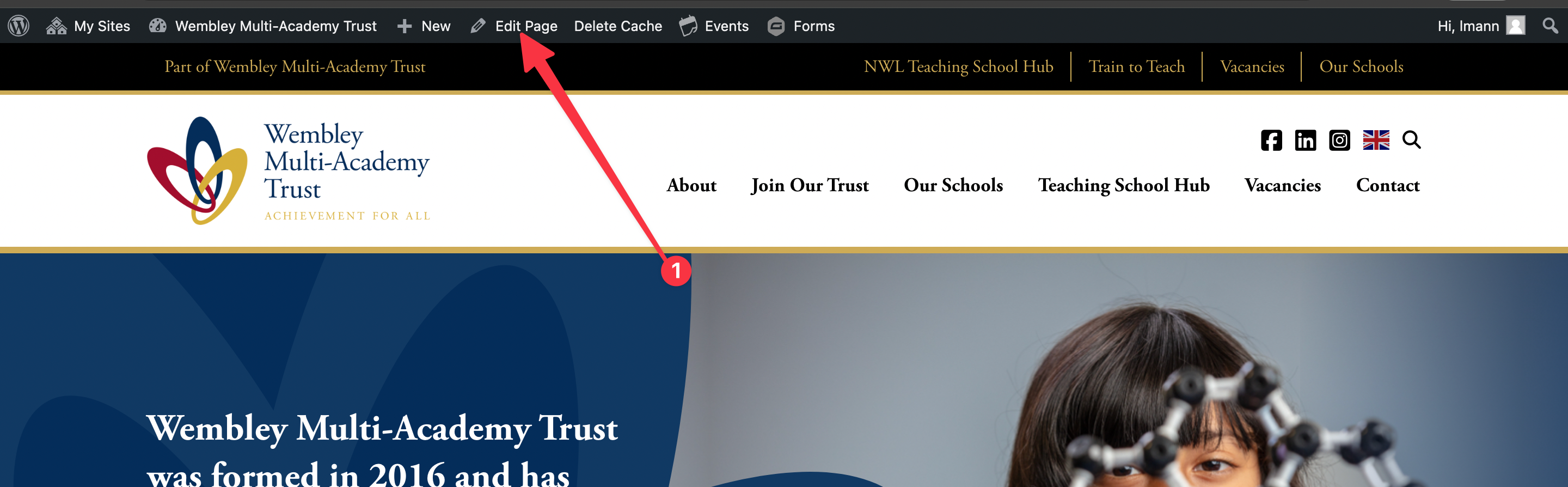 Step 1: Click “edit page” in the admin bar