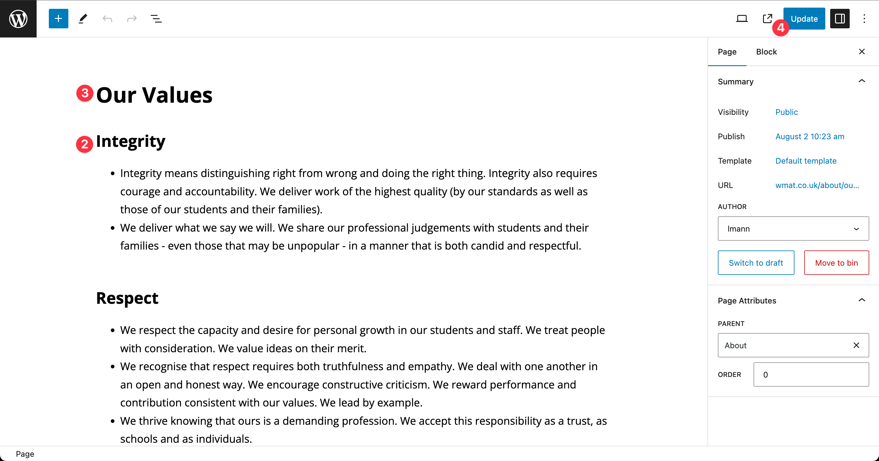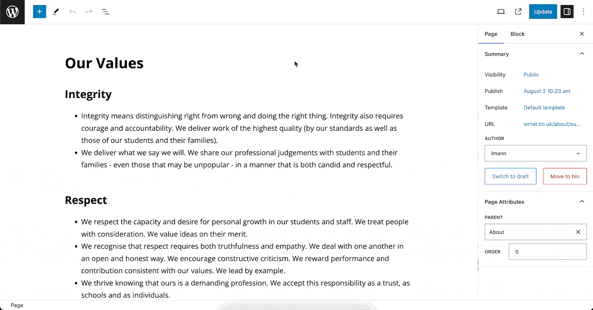 Step 5: Don’t forget to click the “update” button in the top right