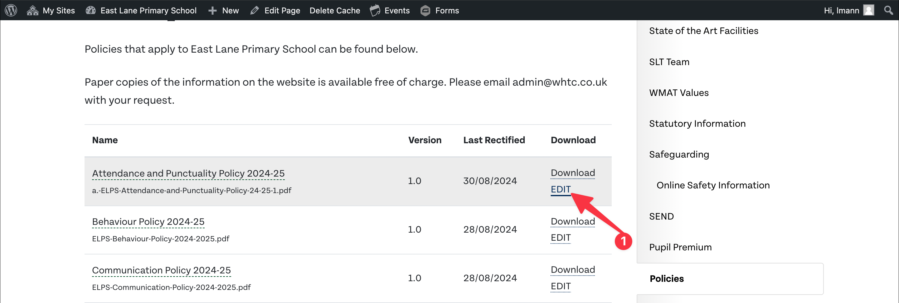 Step 1 (Update Existing): Click the “EDIT” link next to policy you wish to update