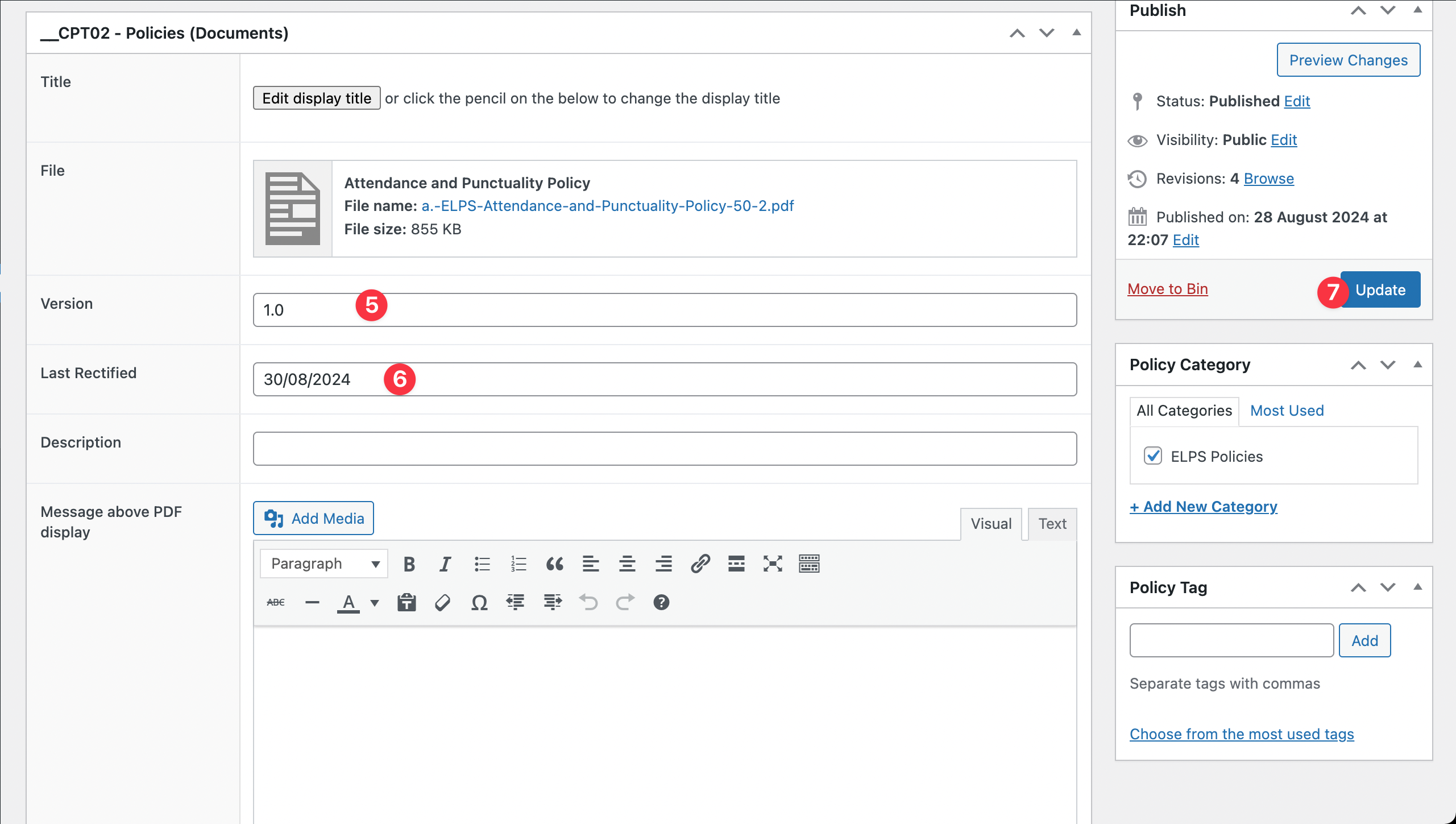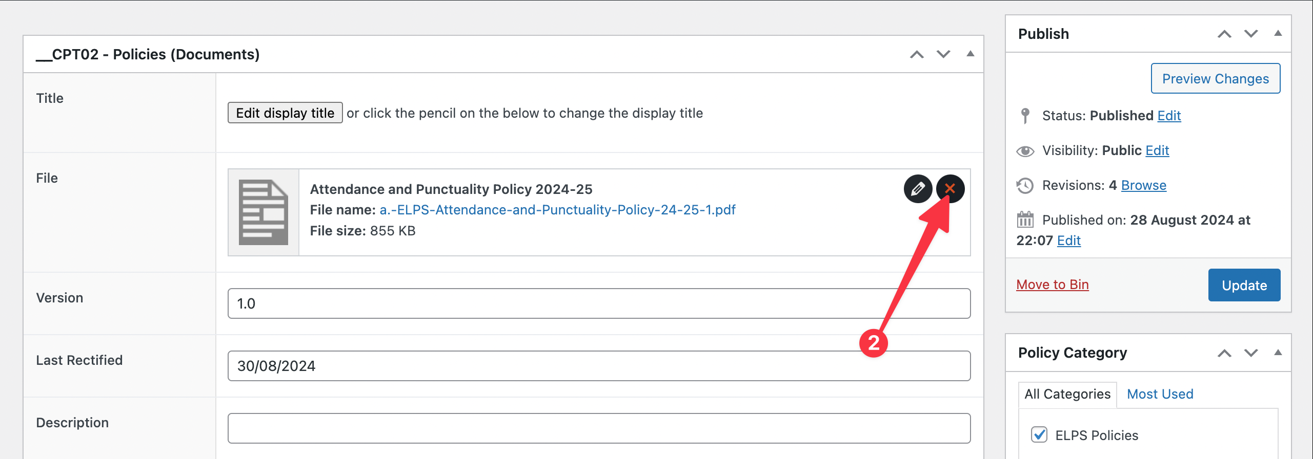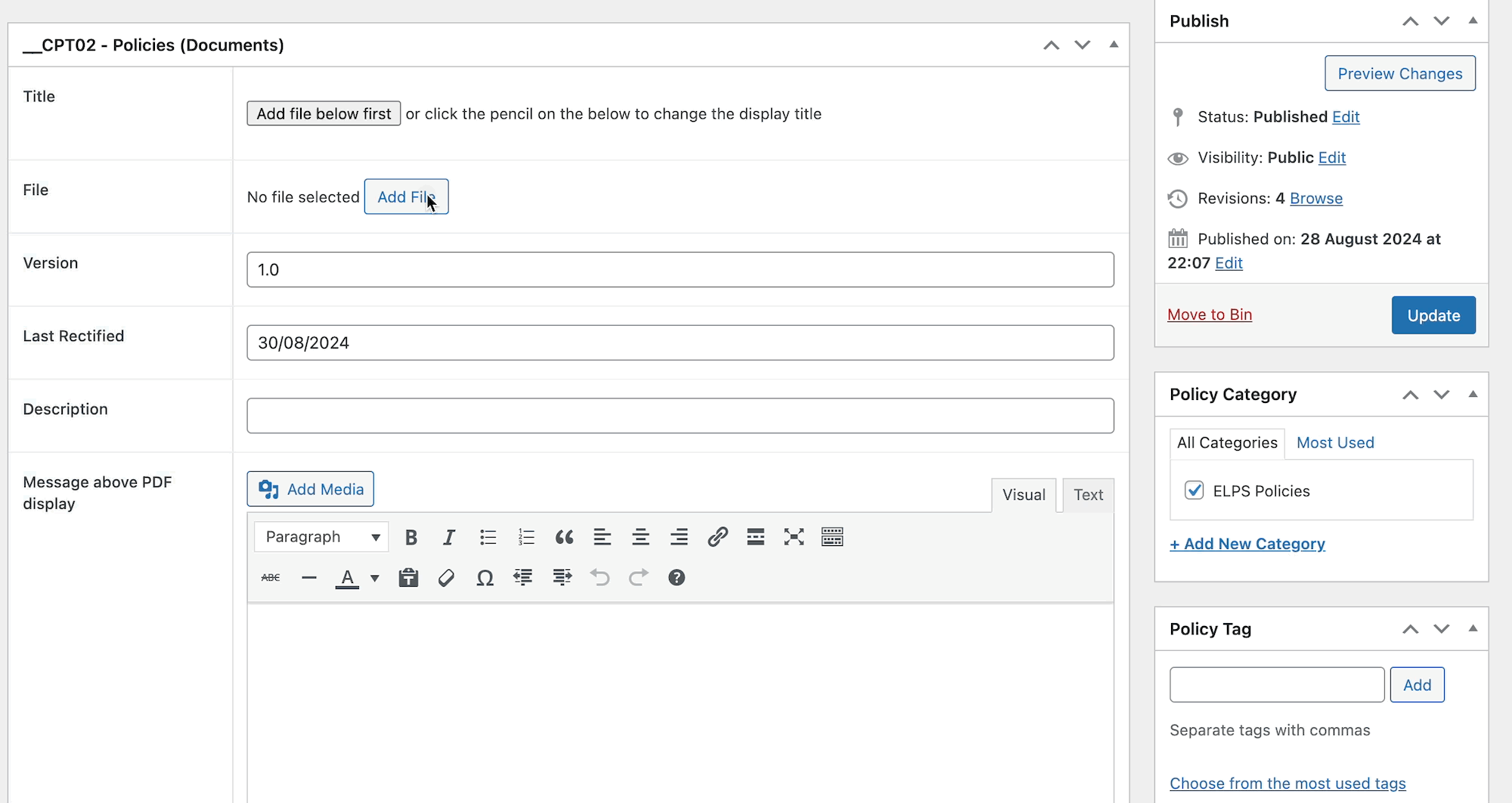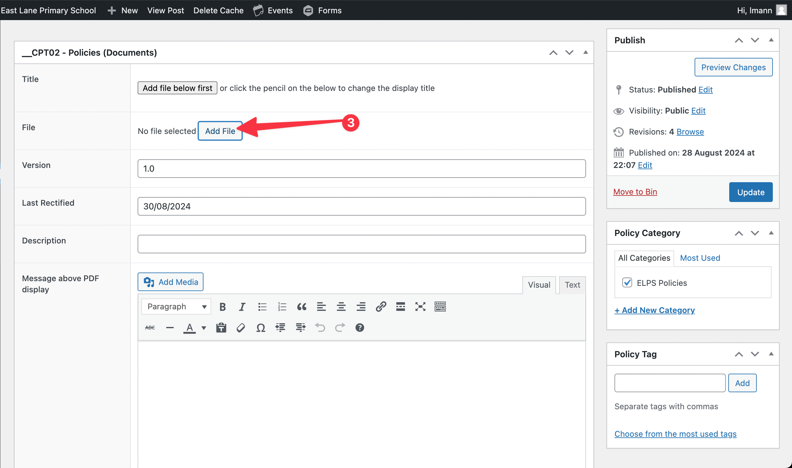 Step 1 (New): Hover over the “New” tab in the admin bar and click on “Policy Document”